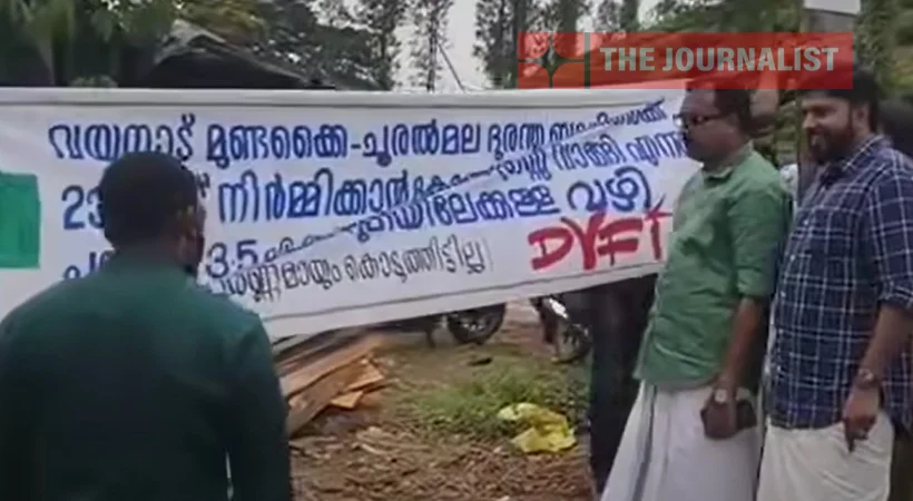 വീടുകൾ നിർമിക്കാൻ കോൺഗ്രസ് ഏറ്റെടുത്തതായി പറയുന്ന വയനാട് കുന്നമ്പറ്റയിലെ ഭൂമിയിലേക്കുള്ള വഴിയിൽ ബോർഡ് സ്ഥാപിച്ച് ഡിവൈഎഫ്ഐ പ്രവർത്തകർ രംഗത്തെത്തി. സംസ്ഥാന പ്രസിഡന്റ് വി. വസീഫ്ന്റെ നേതൃത്വത്തിൽ കൽപ്പറ്റയിൽ നിന്ന് കുന്നമ്പറ്റയിലേക്ക് ബൈക്ക് റാലിയായി എത്തിയാണ് ബോർഡ് സ്ഥാപിച്ചത്.